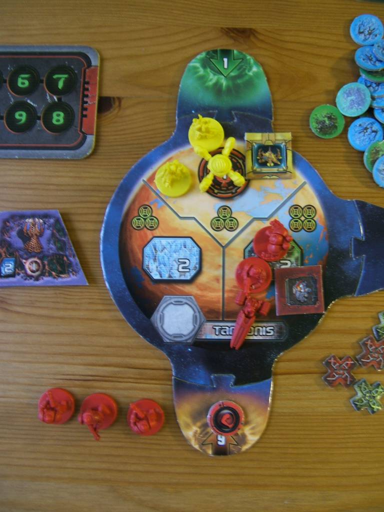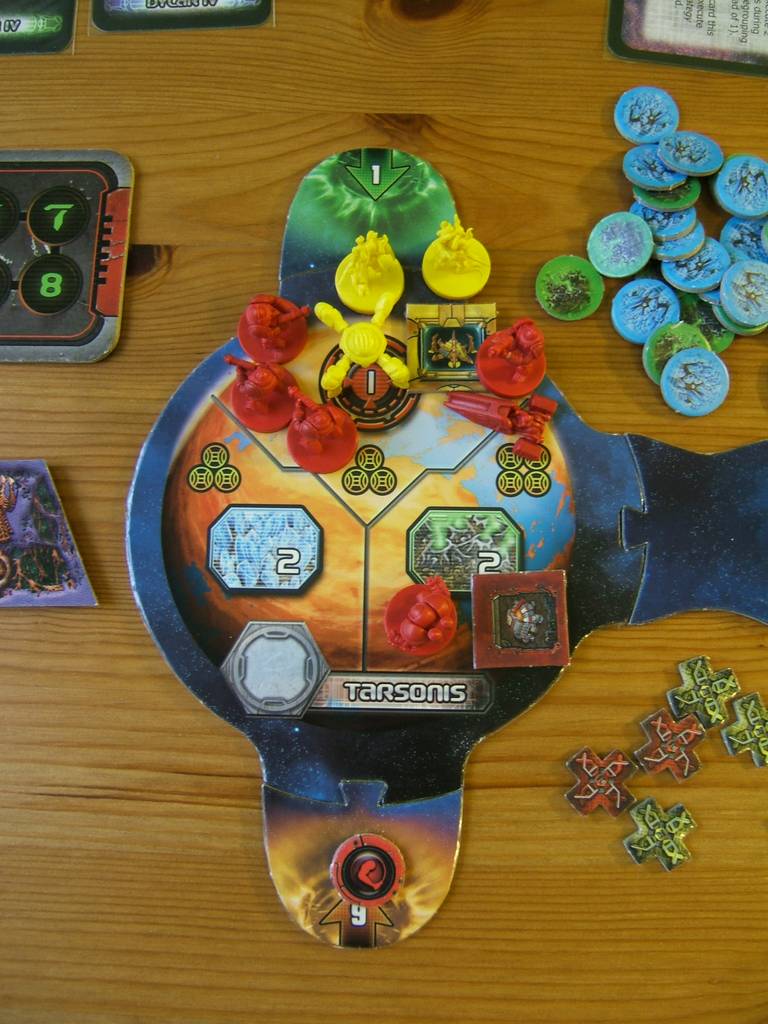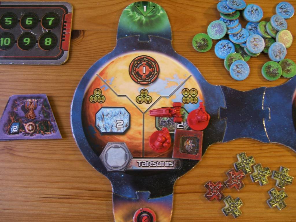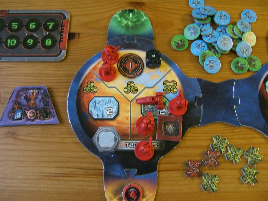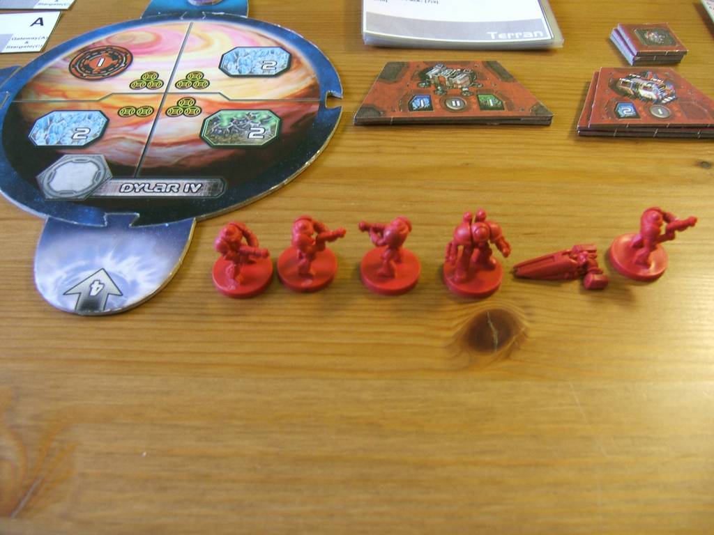 | Technology research affect the whole factions. Troops waiting for invasion does nothing, but troops located on a planet will force deplete the resources. Each faction can force deplete 1 resources on each planet. If a faction controls more than 1 territory that is not depleted, the territory to deplete is selected randomly. Victory points can be force depleted, so if the AI takes the lead, eventually there will be no more resources or victory points to harvest and the player will lose. |  |