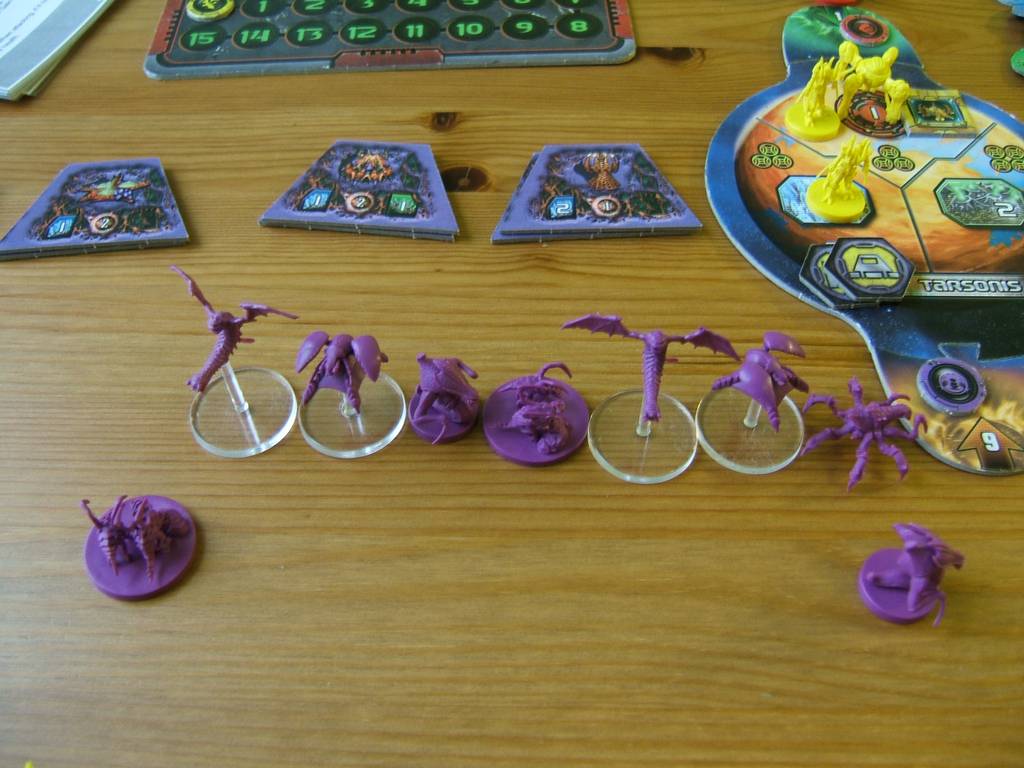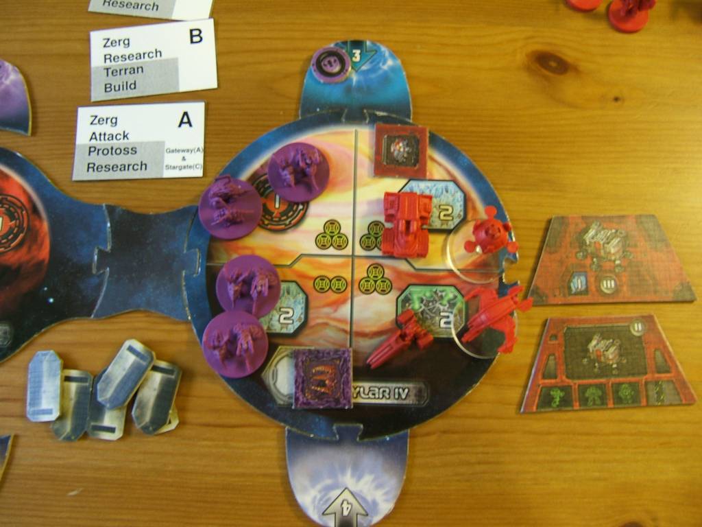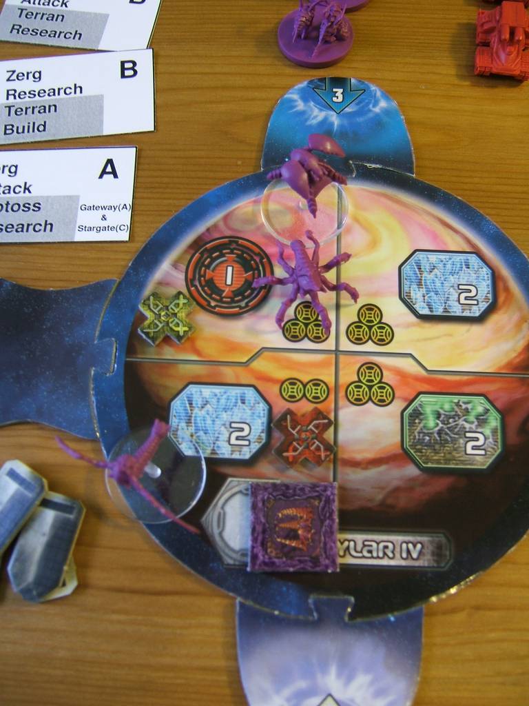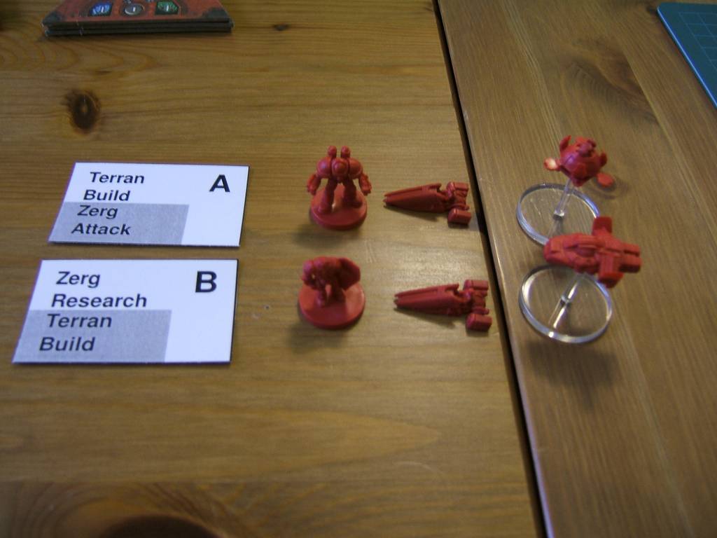| If a unit than can be morphed (Hydralisk and Mutalisk) is waiting in line, the extra 4th unit zergling will not be placed, and the first morphable unit waiting in line will morph. When using the expansion, use the letter on the card to know if a mutalisk is morphing in guardian or devourer. |  |